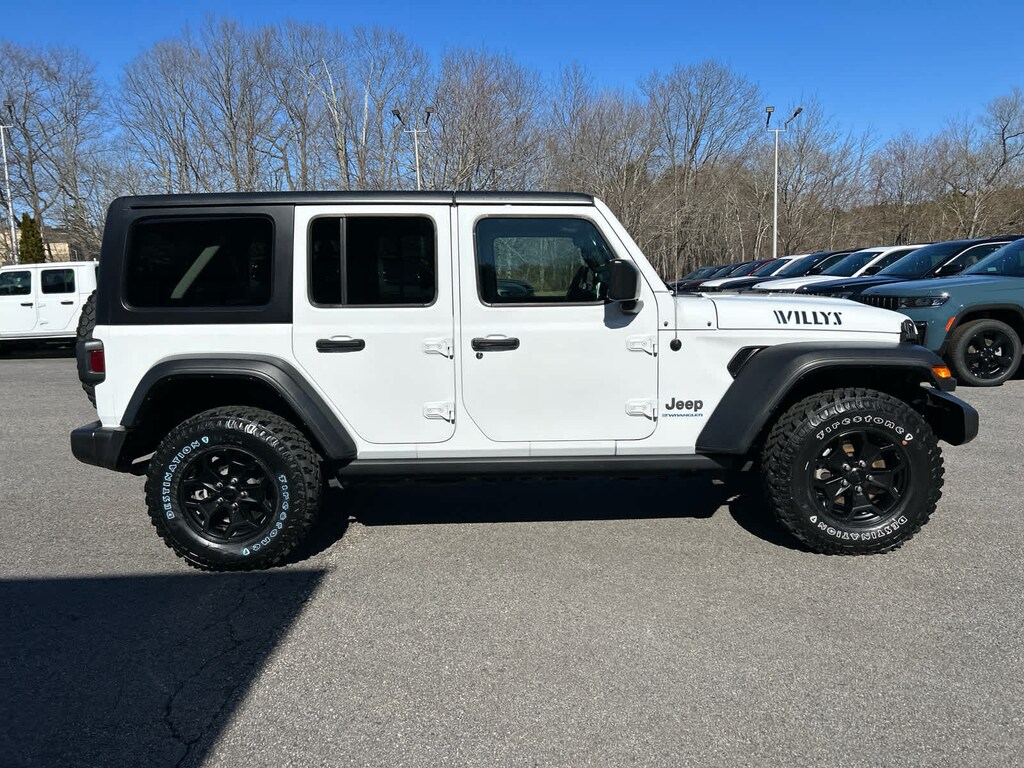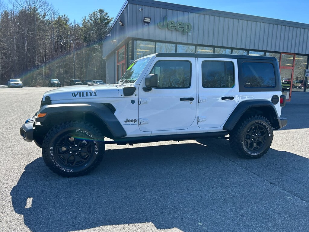 Freedom Panel Storage Bag, Rear Window Defroster, Rear Window Wiper/Washer, Heated Steering Wheel, Remote Start System, Heated Front Seats, Universal Garage Door Opener, Engine: 2.0L I4 DOHC DI Turbo PHEV, Transmission: 8-Speed Auto 8P75PH PHEV, Willys, 4xe 4-Wheel Drive Swing Gate Decal, Willys 4xe Hood Decal, Black Grille, MOPAR All-Weather Floor Mats, Rock Protection Sill Rails, 97 MPH Vehicle Max Speed Calibration, Anti-Spin Differential Rear Axle, Molded-In-Color Fender Flares (2-Piece), Front LED Fog Lamps, LED Premium Reflector Headlamps, LED Headlamp & Fog Lamp Group, (STD), (STD). MP3 Player, Privacy Glass, Keyless Entry, Steering Wheel Controls.