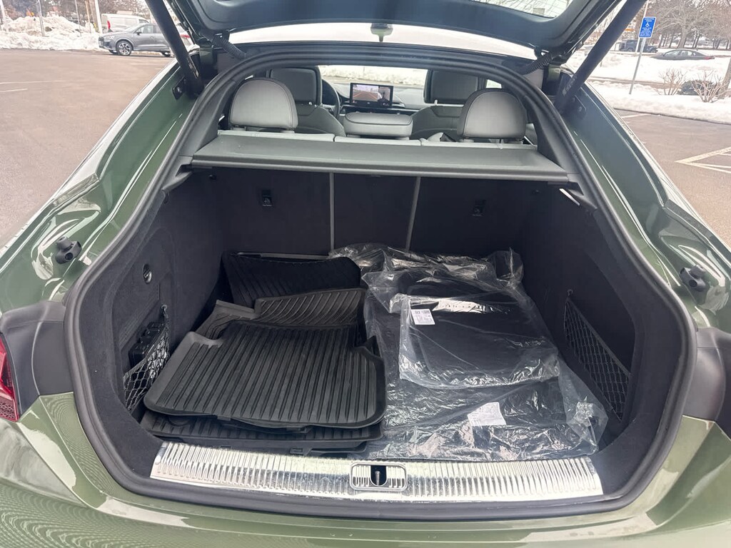 Hands-On Detection Steering Wheel, Power Folding Exterior Mirrors, Leatherette Covered Center Console & Door Armrests, 2 Rear USB Charge Ports, Top View Camera System, Audi Active Lane Assist, Bang & Olufsen Sound System w/3D Sound, Audi Phone Box, Alarm System w/Motion Sensor, Auto-Dimming Exterior Mirrors w/Memory, SiriusXM w/360L, 3-month Platinum Plan trial subscription, Parking System Plus (Front/Rear Acoustic Sensors), Adaptive Cruise Control, Heated Steering Wheel, Audi Advanced Key, keyless entry doors and trunk, Audi Side Assist w/Pre Sense Rear, Driver Seat Memory, Traffic Jam Assist, Audi Virtual Cockpit Plus, black Audi rings and model badge, Black Exterior Trim, Black Exterior Mirror Housings, Wheels: 19 5-Arm-Cutter Design Bi-Color Finish, Black Rear Lip Spoiler, Red Brake Calipers, Black Fender Badges, Aluminum Ellipse Dark Inlays, Tires: 19 All-Season, Dark Chrome Exhaust Tips, DISTRICT GREEN METALLIC, All-Weather Floor Mats, Cargo Mat, lower door trim LED light displaying Audi logo (4 rings), Front doors only. Serviced here, Non-Smoker vehicle