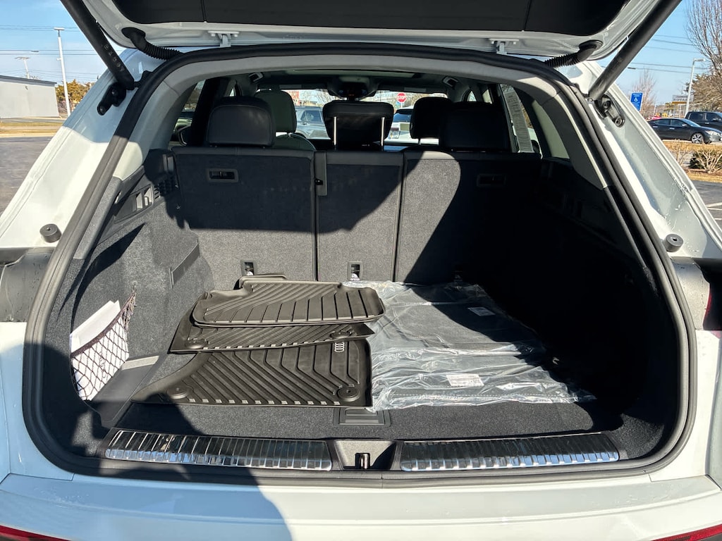 PREMIUM PLUS: USB Power Delivery (2x60W Front & 2x100W Rear), Bang & Olufsen Sound System w/3D Sound, Top View Camera System, Adaptive Cruise Assist, LED Interior Lighting Pro Package, Animation for Headlights & Taillights, Dynamic Interaction Light, Heated Steering Wheel w/Hands-On Detection, Head-Up Display, Headlight Washers, LED Headlights Plus w/Digital DRL, GLACIER WHITE METALLIC, AUDI BEAM-RINGS: lower door trim LED light displaying Audi logo (4 rings), Front doors only, AUDI GUARD ALL-WEATHER FLOOR MATS: front and rear set of black rubber mats (4), Front set features Audi rings logo. Serviced here, Non-Smoker vehicle, Originally bought here