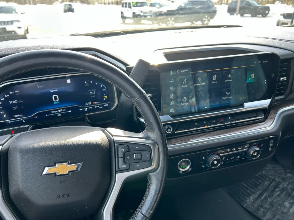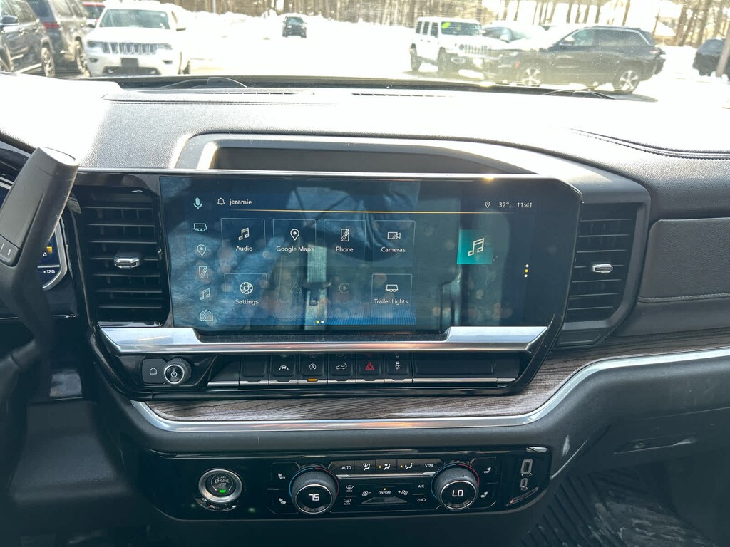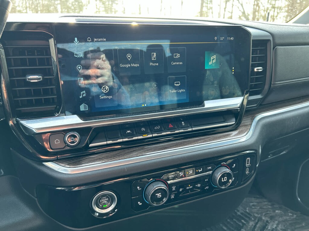 with machine face and Grazen Painted pockets, with Google built-in, 13.4 diagonal HD color touchscreen, includes multi-touch display, AM/FM stereo, Bluetooth® streaming audio for music and most phones; featuring wireless Android Auto® and Apple CarPlay® capability for compatible phones, advanced voice recognition, in-vehicle apps, personalized profiles for infotainment and vehicle settings (STD), (310 hp [231 kW] @ 5600 rpm, 430 lb-ft of torque [583 Nm] @ 3000 rpm) (STD), with overdrive and tow/haul mode. Includes Cruise Grade Braking and Powertrain Grade Braking (STD). Keyless Entry, Privacy Glass, Steering Wheel Controls, Electronic Stability Control.