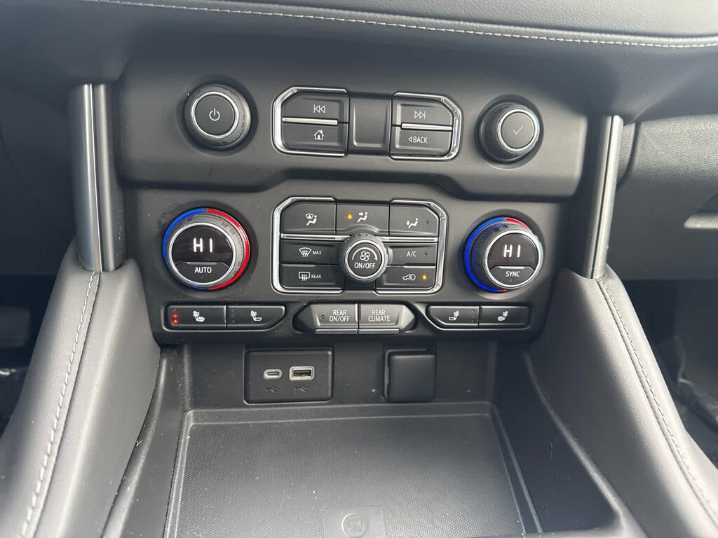 includes (WPD) Driver Alert Package content, (UV2) HD Surround Vision, (UKK) Rear Pedestrian Alert, (A45) memory settings, (DXR) outside heated power-adjustable, power-folding, body-color mirrors with driver-side auto-dimming and integrated turn signal indicators, (N38) power tilt and telescopic steering column, (KI3) heated steering wheel, (KA6) second row outboard heated seats, (ATT) second row power 60/40 split-folding bench seats and (AS8) third row power 60/40 split-folding bench seats, with express-open and close and power sunshade, WHEELS, 20 X 9 (50.8 CM X 22.9 CM) PAINTED ALUMINUM WITH MACHINE FACE AND ARGENT METALLIC POCKETS, SEATS, SECOND ROW BUCKET, POWER RELEASE, 10.2 diagonal HD color touchscreen, includes multi-touch display, AM/FM stereo, Bluetooth® streaming audio for music and most phones; featuring wireless Android Auto® and Apple CarPlay® capability for compatible phones, advanced voice recognition, in-vehicle apps, personalized profiles for infotainment and vehicle settings (STD), STEERING WHEEL, HEATED, with Dynamic Fuel Management, Direct Injection and Variable Valve Timing, includes aluminum block construction (355 hp [265 kW] @ 5600 rpm, 383 lb-ft of torque [518 Nm] @ 4100 rpm) (STD), electronically controlled with overdrive, includes Traction Select System including tow/haul (Standard with (L84) 5.3L EcoTec3 V8 engine only.) (STD), includes (UKC) Lane Change Alert with Side Blind Zone Alert and (UFG) Rear Cross Traffic Alert. Serviced here, Non-Smoker vehicle