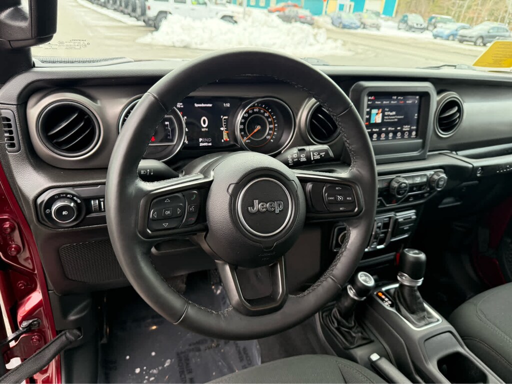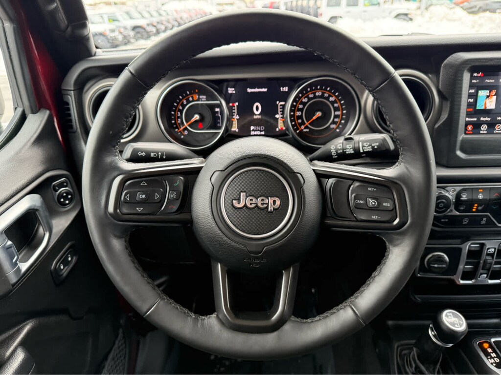 TRANSMISSION: 8-SPEED AUTOMATIC (850RE) Anti-Lock 4-Wheel Disc Brakes, Tip Start, Dana M200 Rear Axle, Selec-Speed Control, QUICK ORDER PACKAGE 25S SPORT S Engine: 3.6L V6 24V VVT eTorque UPG I, Transmission: 8-Speed Automatic (850RE), Front 1-Touch Down Power Windows, Speed Sensitive Power Locks, Sport S, Power Heated Mirrors, Automatic Headlamps, Leather Wrapped Steering Wheel, Security Alarm, Remote Keyless Entry, Sun Visors w/Illuminated Vanity Mirrors, BLACK 3-PIECE HARD TOP Freedom Panel Storage Bag, Rear Window Defroster, Rear Window Wiper/Washer, No Soft Top, COLD WEATHER GROUP Heated Steering Wheel, Heated Front Seats, Leather Wrapped Steering Wheel, TECHNOLOGY GROUP Air Conditioning w/Auto Temp Control, 2-Door Passive Entry, Front Door Locks, Cluster 7.0 TFT Color Display, SiriusXM Satellite Radio, SiriusXM Radio Service, Air Filtering, CONVENIENCE GROUP Universal Garage Door Opener, ENGINE: 3.6L V6 24V VVT ETORQUE UPG I 600 Amp Maintenance Free Battery, 48V Belt Starter Generator, GVWR: 5,460 lbs, Delete Alternator. Serviced here