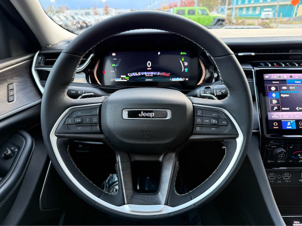 Navigation, Sunroof, Panoramic Roof, Power Liftgate, Heated Driver Seat Jeep Grand Cherokee 4xe with Midnight Sky exterior and Global Black interior features a 4 Cylinder Engine with 375 HP at 5250 RPM*.