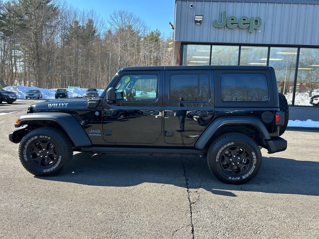 Freedom Panel Storage Bag, Rear Window Defroster, Rear Window Wiper/Washer, Heated Steering Wheel, Remote Start System, Heated Front Seats, Class II Receiver Hitch, 700 Amp Maintenance Free Battery, 7 & 4 Pin Wiring Harness, Auxiliary Switches, Universal Garage Door Opener, Engine: 2.0L I4 DOHC DI Turbo PHEV, Transmission: 8-Speed Auto 8P75PH PHEV, Willys, 4xe 4-Wheel Drive Swing Gate Decal, Willys 4xe Hood Decal, Black Grille, MOPAR All-Weather Floor Mats, Rock Protection Sill Rails, 97 MPH Vehicle Max Speed Calibration, Anti-Spin Differential Rear Axle, Molded-In-Color Fender Flares (2-Piece), Front LED Fog Lamps, LED Premium Reflector Headlamps, LED Headlamp & Fog Lamp Group, (STD), (STD). MP3 Player, Keyless Entry, Privacy Glass, Steering Wheel Controls.