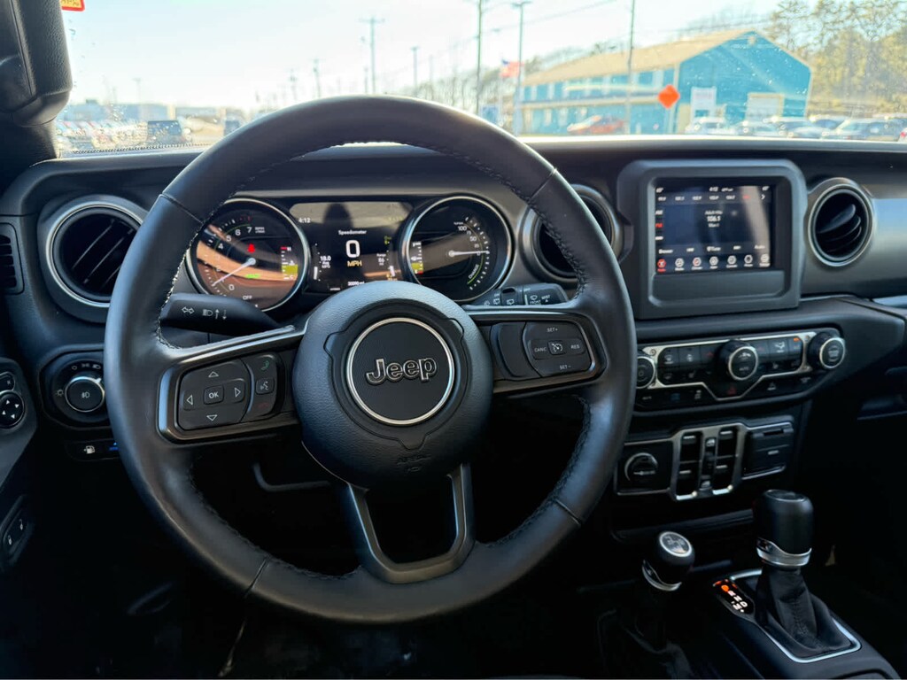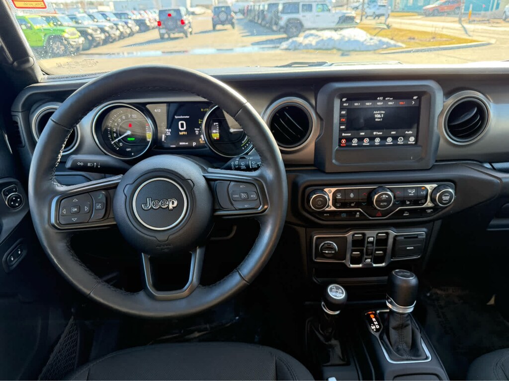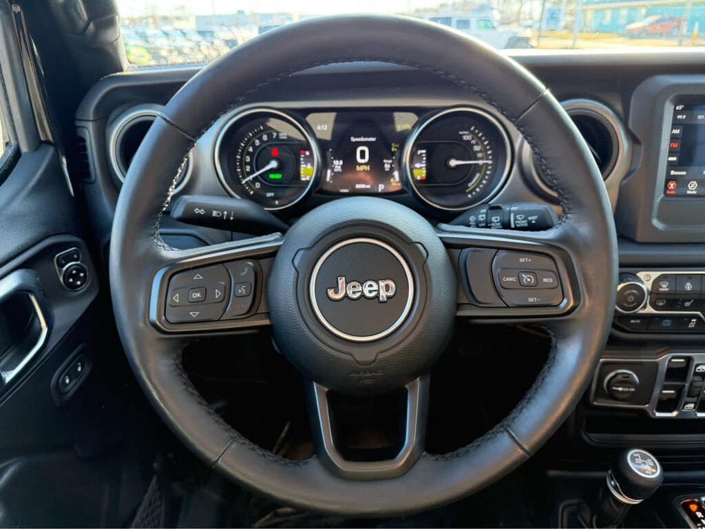 BLACK 3-PIECE HARD TOP Freedom Panel Storage Bag, Rear Window Defroster, Rear Window Wiper/Washer, COLD WEATHER GROUP Heated Steering Wheel, Remote Start System, Heated Front Seats, CONVENIENCE GROUP Universal Garage Door Opener, QUICK ORDER PACKAGE 29W WILLYS Engine: 2.0L I4 DOHC DI Turbo PHEV, Transmission: 8-Speed Auto 8P75PH PHEV, Willys, 4xe 4-Wheel Drive Swing Gate Decal, Willys 4xe Hood Decal, Black Grille, MOPAR All-Weather Floor Mats, Rock Protection Sill Rails, 97 MPH Vehicle Max Speed Calibration, Anti-Spin Differential Rear Axle, Molded-In-Color Fender Flares (2-Piece), Front LED Fog Lamps, LED Premium Reflector Headlamps, LED Headlamp & Fog Lamp Group, TRANSMISSION: 8-SPEED AUTO 8P75PH PHEV (STD), ENGINE: 2.0L I4 DOHC DI TURBO PHEV (STD). Non-Smoker vehicle