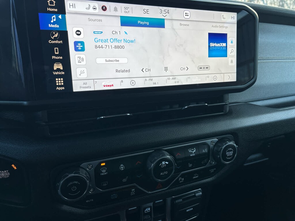 Emergency/Assistance Call, 2-Door Passive Entry, Front Door Locks, Remote Start System, Universal Garage Door Opener, Heated Front Seats, Heated Steering Wheel, Freedom Panel Storage Bag, Rear Window Defroster, Rear Window Wiper/Washer, No Soft Top, ParkSense Rear Park Assist System, Auto High Beam Headlamp Control, Blind Spot & Cross Path Detection, LED Taillamps, (STD), (STD). MP3 Player, Privacy Glass, Child Safety Locks, Steering Wheel Controls.