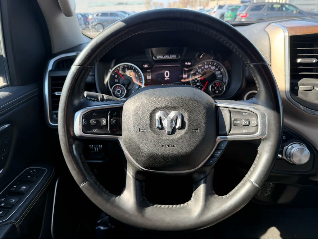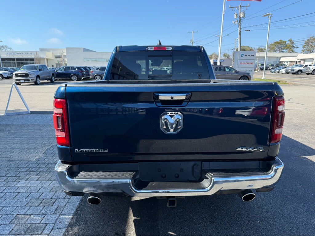 ENGINE: 5.7L V8 HEMI MDS VVT Active Noise Control System, Heavy Duty Engine Cooling, Passive Tuned Mass Damper, GVWR: 7,100 lbs, Dual Rear Exhaust w/Bright Tips, HEMI Badge, 220 Amp Alternator, LARAMIE LEVEL 1 EQUIPMENT GROUP Remote Tailgate Release, Rear Underseat Compartment Storage, Auto High Beam Headlamp Control, Blind Spot & Cross Path Detection, Rain Sensitive Windshield Wipers, ParkSense Front/Rear Park Assist w/Stop, Foam Bottle Insert (Door Trim Panel), Rear 60/40 Folding Split Recline Seat, WHEELS: 20 X 9 PREMIUM PAINT/POLISHED Tires: 275/55R20 OWL All Season, TRANSMISSION: 8-SPEED AUTOMATIC (8HP75). Serviced here, Non-Smoker vehicle, Originally bought here